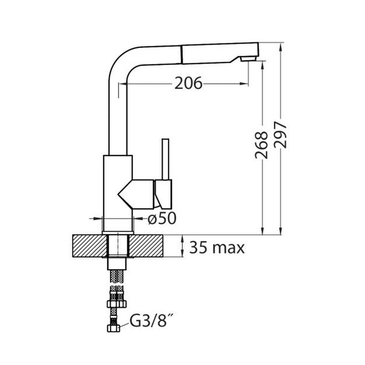 Model Siros je vybavený výsuvnou výtokovou trubkou, ktorá výrazne zvyšuje komfort pri práci. Kuchynská batéria s výsuvnou výtokovou trubkou uľahčuje umývanie veľkých hrncov, plechov a preplachovanie celého priestoru drezu.