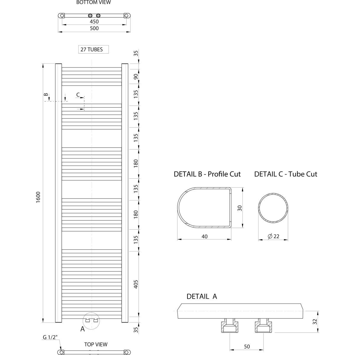 Aqualine Alya kúpeľňový radiátor rebríkový 160x50 cm chrómová LLS304