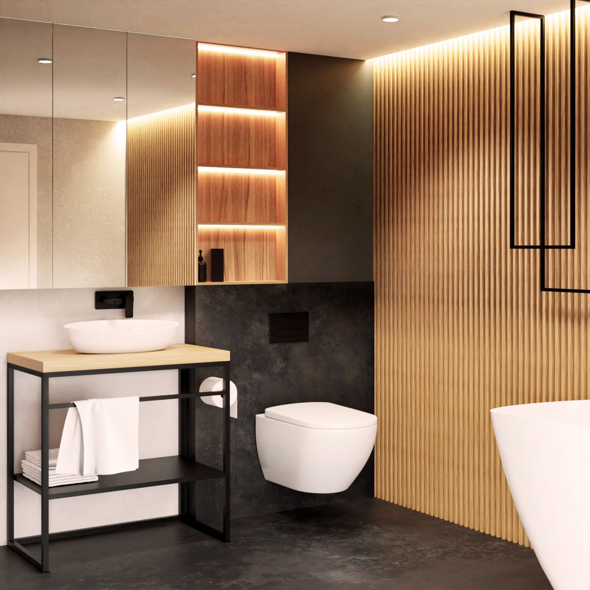 Kúpeľňová konzola je jedným z najvýkonnejších kusov kúpeľňového nábytku. Dokonale nahrádza bežné skrinky pod umývadlom. Modernistická, vyrobená z ocele a prírodného dreva, vhodná na použitie v kúpeľni. Výrobok možno použiť ako kus nábytku, na ktorom bude umiestnené umývadlo, alebo môže byť samostatnou súčasťou kúpeľňového zariadenia. Konzola je vyrobená z materiálov najvyššej kvality. Je celá zváraná, takže ako kus nábytku sa vyznačuje mimoriadnou stabilitou. Konštrukcia je vyrobená z ocele, natretá antikorovými lakmi. Vrchná doska je vyrobená z dubového dreva s primeranou ochranou proti vlhkosti. Mimoriadne funkčný kus nábytku, ktorý sa ideálne hodí do malých kúpeľní. Kombinuje v sebe skrinku pod umývadlo, vešiak na uteráky aj stojan na papier. A polička pod hornou časťou poskytuje ďalší úložný priestor. Vďaka minimalistickému, jednoduchému, takmer strohému štýlu konzoly je výrobok vhodný do loftových interiérov, moderných interiérov a vďaka prírodnému drevu aj do rustikálnych interiérov.
