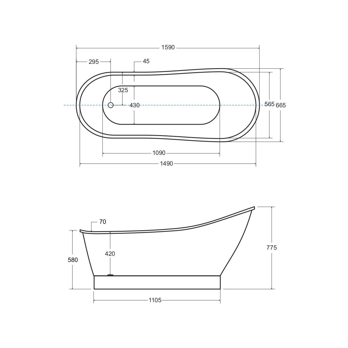 - voľne stojaca vaňa z materiálu Mineral DuraBe