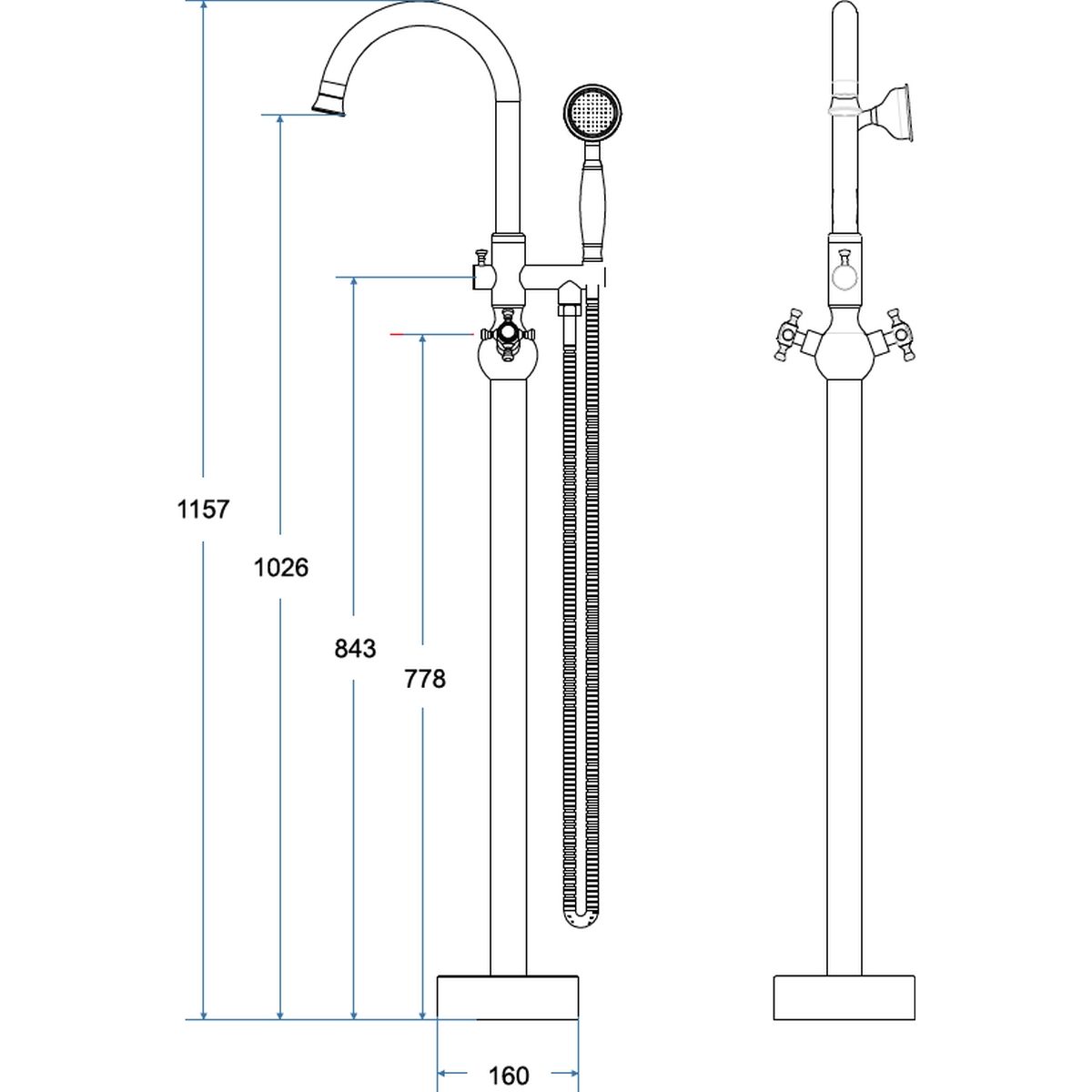 Besco Retro vaňová/sprchová batéria voľne stojaca zlatá BW-RI-ZL