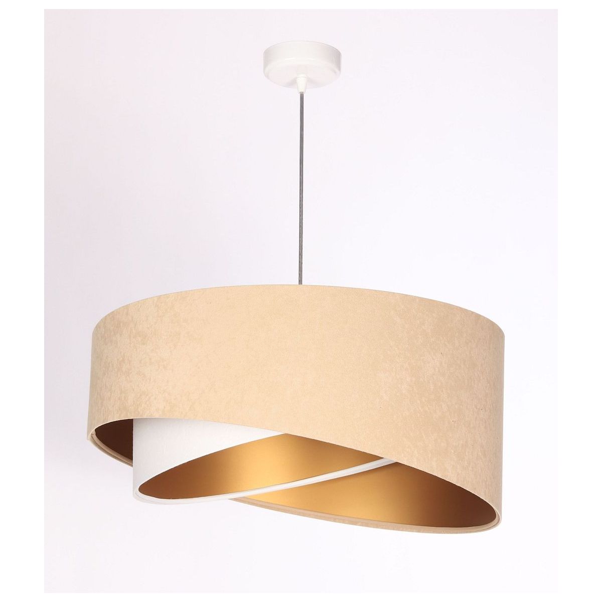 Tienidlo z látky (mikrofáza) na PVC plaste so zlatým stredom. Parametre svietidla: 1 x E27 max. 60 W. Parametre svietidla: plast, 10 cm x 2 cm. Dĺžka kábla: max. 80 cm, nastaviteľná. Farba kábla: priehľadná. Možno použiť LED žiarovky.