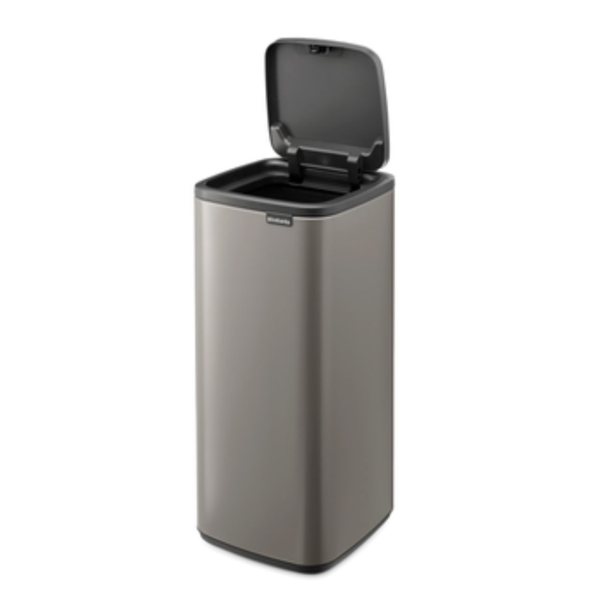 Áno, aj odpadkový kôš môže byť krásny! Odpadkový kôš Bo Touch od spoločnosti Brabantia kombinuje štýlový dizajn s objemom 30 litrov. Bol vyrobený s láskou k domácnosti a so starostlivosťou o planétu. Vďaka svojmu obdĺžnikovému tvaru sa tento priestorovo úsporný kôš dokonale hodí do rohu alebo na stenu. Jeho otváranie s mäkkým povrchom zaručuje jednoduchú a ľahkú manipuláciu - na dotyk ruky! Integrovaná transportná rukoväť uľahčuje prenášanie koša medzi miestnosťami. Go Bo!