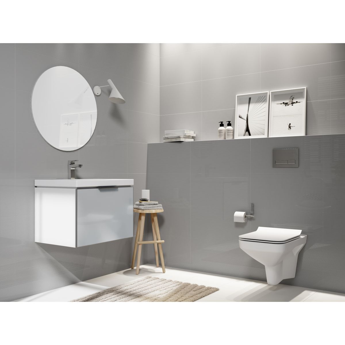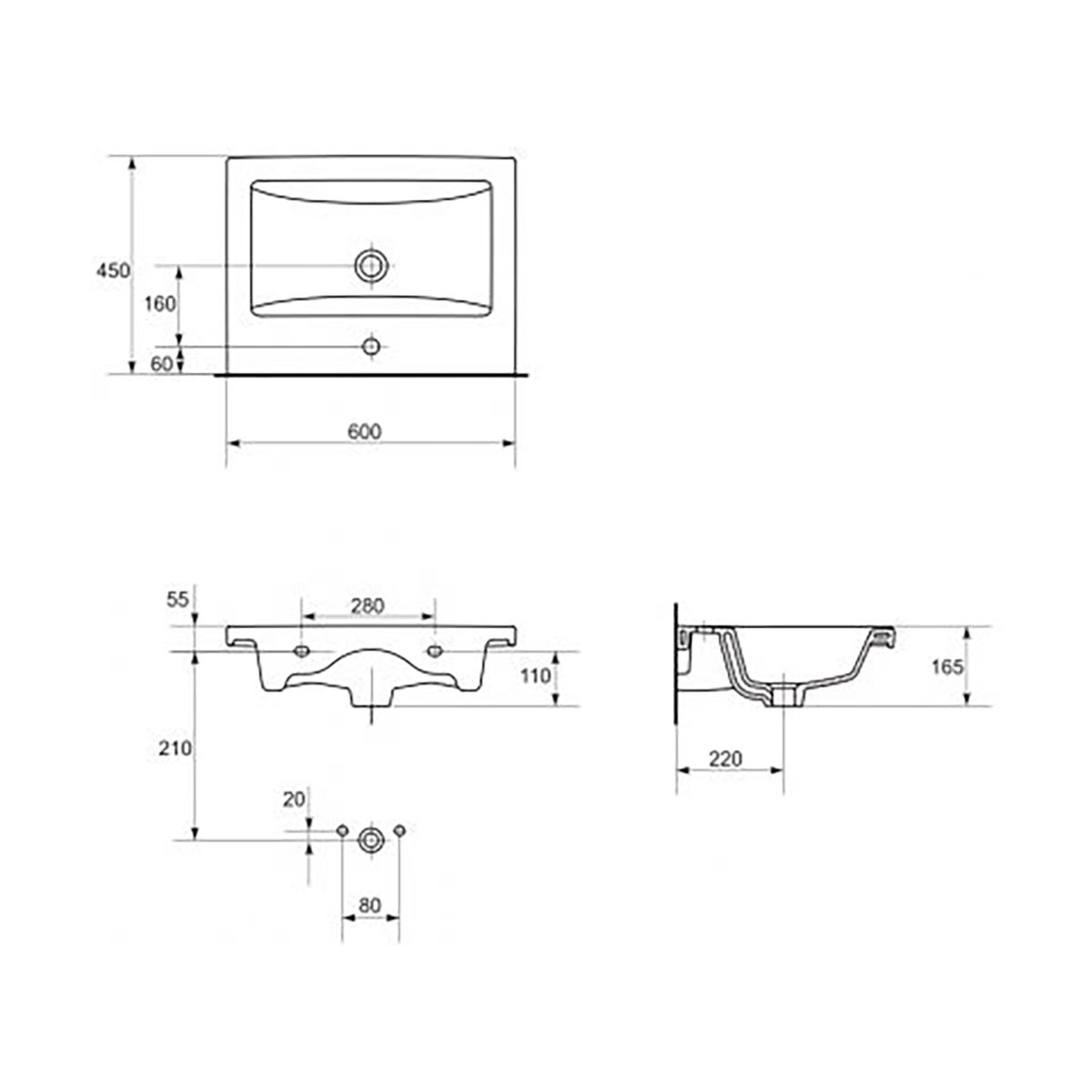 Obdĺžnikové umývadlo je skvelou alternatívou k tradičným umývadlám. Biela farba dodáva pocit čistoty a ďalej prispieva k svetlosti miestnosti. Výrobok je prispôsobený na inštaláciu s umývadlovou skrinkou. Umývadlo má otvor na batériu, takže je vhodné na použitie so stojanovými batériami.