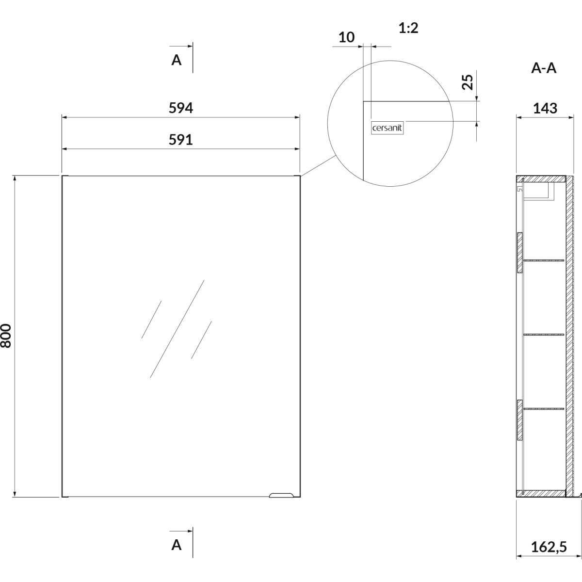 Zrkadlové čelo, korpus z lakovanej drevotriesky, zrkadlová skrinka, pohodlná strieborná úchytka, jemné zatváranie, 3 sklenené police vo vnútri. Drevotriesková doska, z ktorej je skrinka vyrobená, je certifikovaná v súlade s FSC MIX CREDIT SGSCH-COC-007574.