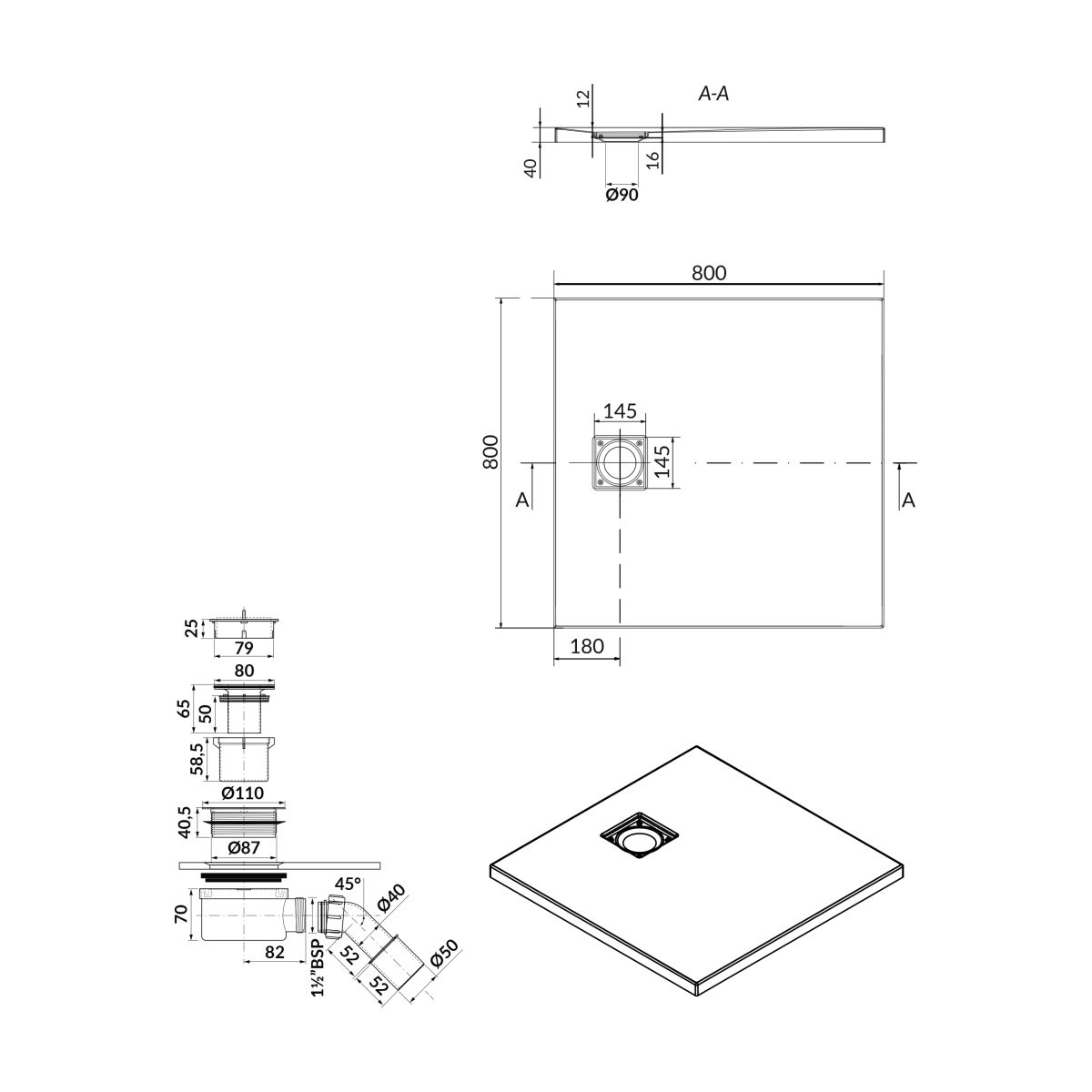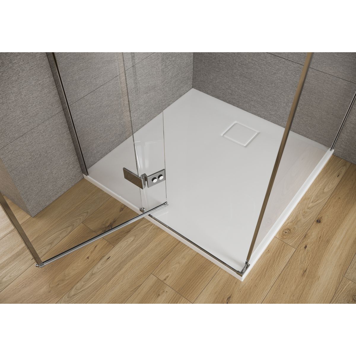 -so zakrytým odtokom v rovnakej farbe ako sprchová vanička