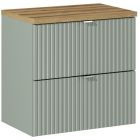 Súprava sa skladá z dvoch prvkov: skrinky pod umývadlo 82-60-2S a dosky NOVA OAK A 89-60. Čelá sú vyrobené z frézovaných vertikálnych drážok, ktoré dodávajú nábytku elegantný charakter. Úchytky v striebornej farbe im dodávajú moderný nádych a uľahčujú ich používanie.