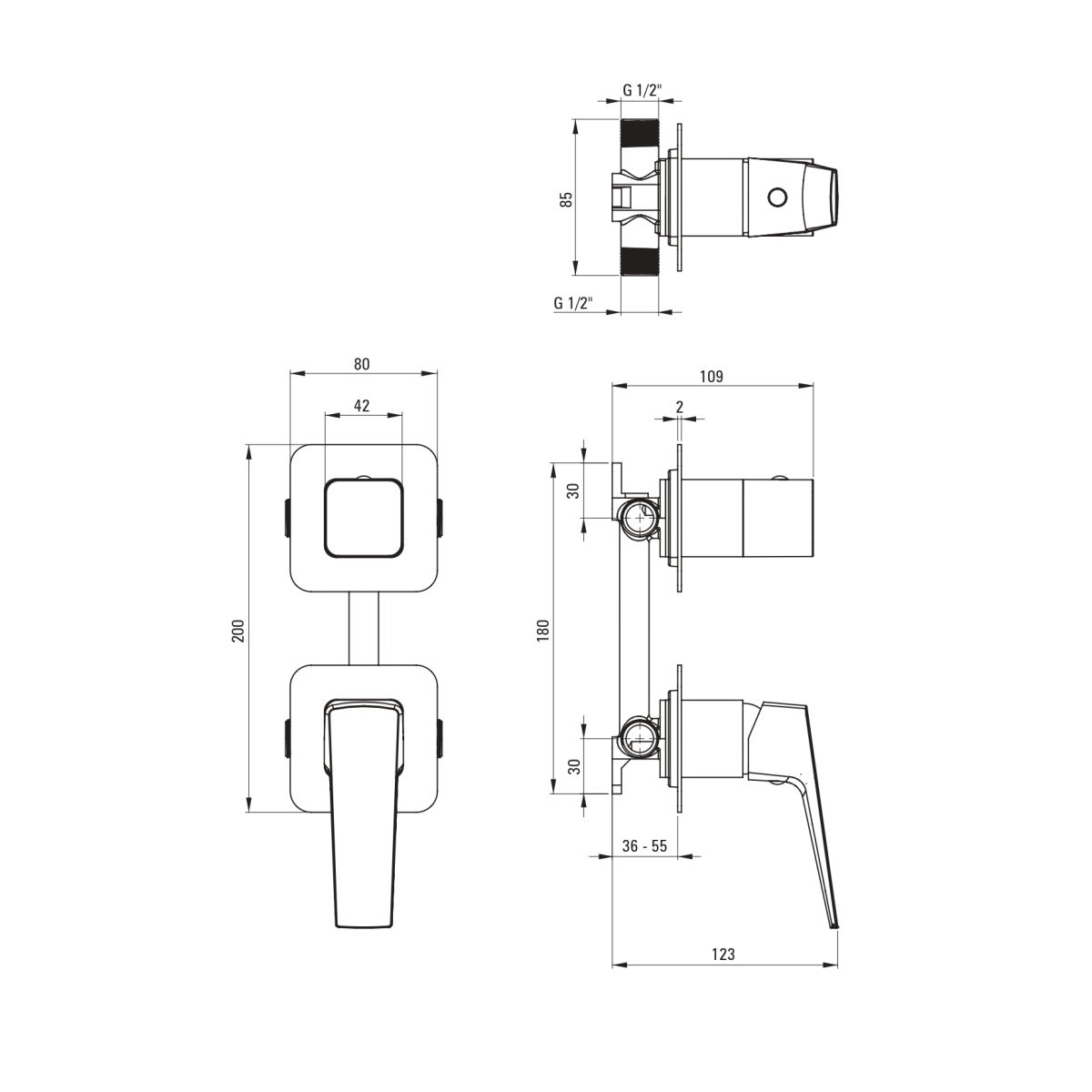 Elegantná skrytá súprava pozostávajúca zo sprchovej hlavice, ručnej sprchy s uhlovým pripojením a hadice a batérie. Sprchová hlavica štvorcového tvaru poskytuje rovnomerný a pohodlný prúd vody. Je vyrobená z vysokokvalitných materiálov, je trvanlivá a odolná voči korózii. Súprava je vybavená aj skrytou batériou s ergonomickou pákou, ktorá umožňuje presné nastavenie teploty a intenzity prúdu vody. Vďaka povrchovej úprave v originálnej titánovej farbe sa celá súprava dokonale hodí do moderných aj klasických kúpeľňových úprav. Vďaka podomietkovému dizajnu sú inštalačné komponenty diskrétne skryté, čo dodáva kúpeľni minimalistický a elegantný vzhľad.