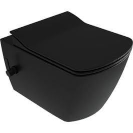 Čierna toaleta Blur s funkciou bidetu je ideálnym riešením pre najvyššiu úroveň hygieny a pohodlia. Je vyrobené z odolnej keramiky a dokonale sa hodí do moderných interiérov. Konštrukcia misy bez okrajov zabraňuje hromadeniu baktérií a nečistôt, vďaka čomu je čistenie mimoriadne jednoduché. Dodáva sa spolu s voľne plávajúcim sedadlom Slim a batériou v matnom čiernom vyhotovení.