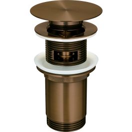 Mosadzná zátka click-clack sa vyznačuje univerzálnym použitím. Je to zátka na bidet a umývadlo. Vďaka objímke ju možno namontovať na umývadlá s prepadom aj bez neho. Odtok sa otvára a zatvára stlačením zátky prstom. Hnedý kartáčovaný povrch ladí s armatúrami v rovnakej farbe a je ideálny pre teplejšie interiéry.