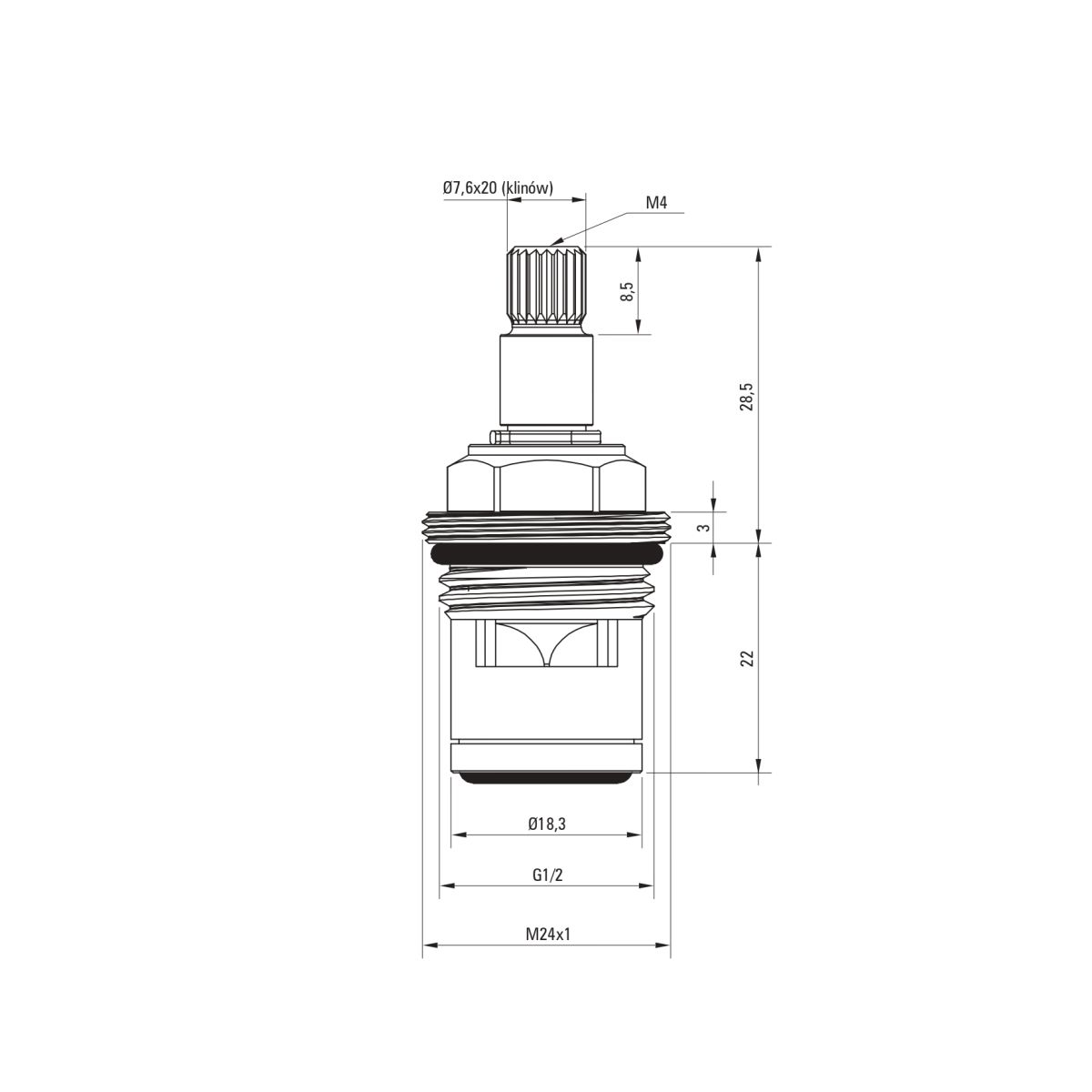 Keramická hlava je odolný výrobok, ktorý zaručuje tesnosť a bezproblémovú prevádzku batérie. Jej povrch je hladký, čím zabraňuje usadzovaniu vodného kameňa. Uhol otáčania hlavice je 90°, vďaka čomu sa rýchlo otvára a zatvára. Je vyrobená z mosadze a montážny tŕň má 20 klinov. Výrobok je určený pre dvojrúčkovú batériu, na teplú vodu.