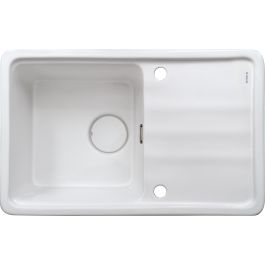 Elegantný keramický drez sa vyznačuje moderným dizajnom a keramickým krytom odtoku. Je vyrobený z kvalitnej keramiky a vyznačuje sa vysokou odolnosťou. Jeho hladký povrch sa ľahko udržiava v čistote, čo zaručuje hygienu a pohodlie pri každodennom používaní. Drez má priestrannú misu, ktorá umožňuje pohodlne umývať aj veľký riad. Dodáva sa aj s priestorovo úsporným sifónom pod skrinku na jednoduchú organizáciu priestoru. Automatická zátka ovládaná tlačidlom poskytuje ešte väčší komfort pri každodennom používaní. Drez sa predáva s HPL doskou, namontovanou na misu, ktorá je ideálna na krájanie a servírovanie jedla.