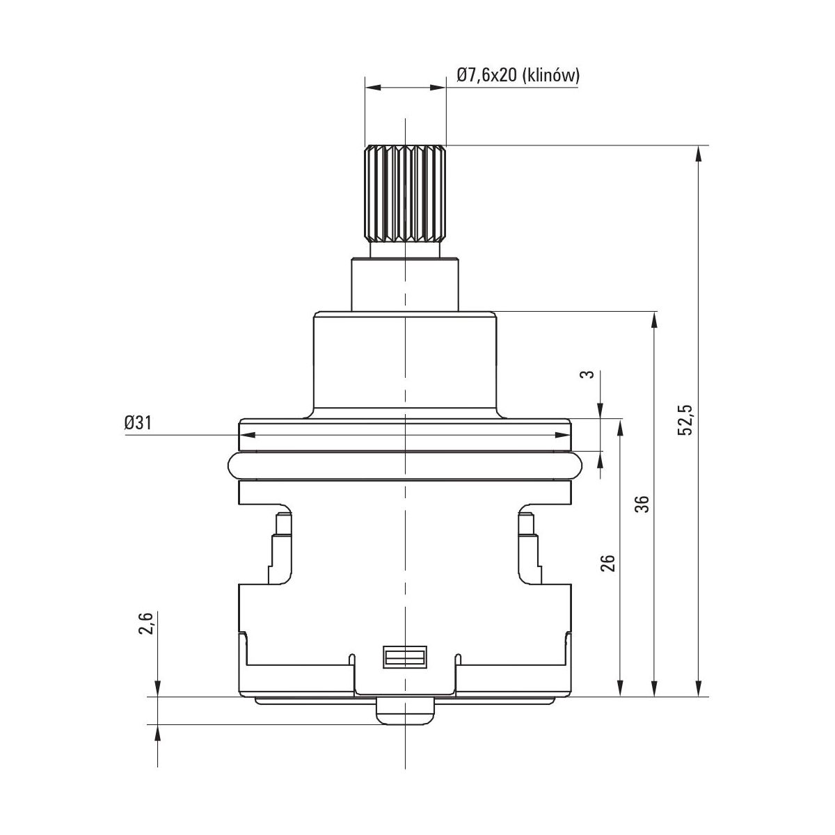 Funkčný prepínač pre vaňové batérie slúži na zmenu zdroja výstupu vody. Na jednej strane má vstup zmiešanej vody a na druhej strane prepínač pre sprchovú rukoväť, dažďovú sprchu alebo výtok. Prepínač bol vyrobený z najkvalitnejších materiálov a ľahko sa ovláda, čo zaručuje dlhodobú a správnu prevádzku. Zobrazený model je určený pre 3-otvorové vaňové batérie, je dvojfunkčný, mechanický a má prídavný adaptér; hodí sa okrem iného k výrobkom z kolekcie Hyacinth (napr. BQH_013M). * priemer 31 mm - 7,6 mm, * 20 klinov