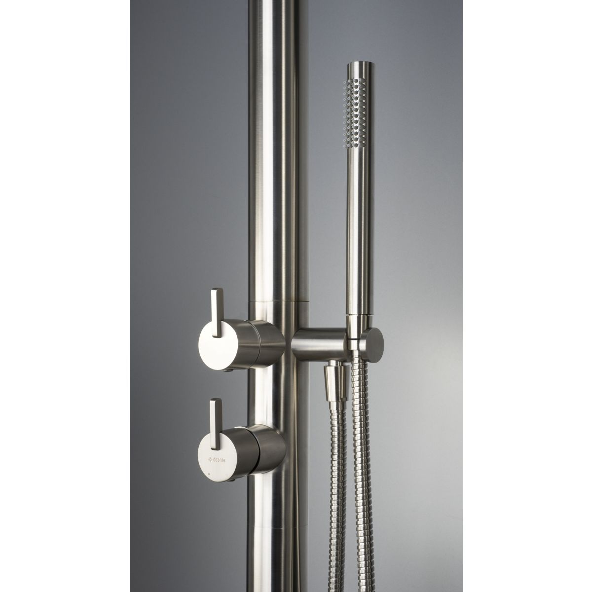 Voľne stojaca sprchová hlavica je univerzálnym riešením, ktoré sa dokonale hodí do elegantnej kúpeľne aj na záhradu, kde sa môžete rýchlo schladiť počas horúcich letných dní. Je vyrobená z najkvalitnejšej nehrdzavejúcej ocele a zaručuje odolnosť a dokonalý vzhľad po mnoho rokov. Jej moderný, minimalistický dizajn sa dokonale hodí do každého interiéru a esteticky zapadne do záhradného prostredia. To, čo model Silia odlišuje, je tryska. Napriek malej hlavici nadobúda prúd kužeľovitý tvar a má optimálnu intenzitu. Dažďová sprcha je vybavená ručnou sprchou a hlavovou sprchou, ktoré majú systém Anti-calc. Ten zabraňuje usadzovaniu vodného kameňa, čo výrazne uľahčuje udržiavanie dažďovej sprchy v čistote a predlžuje jej životnosť.