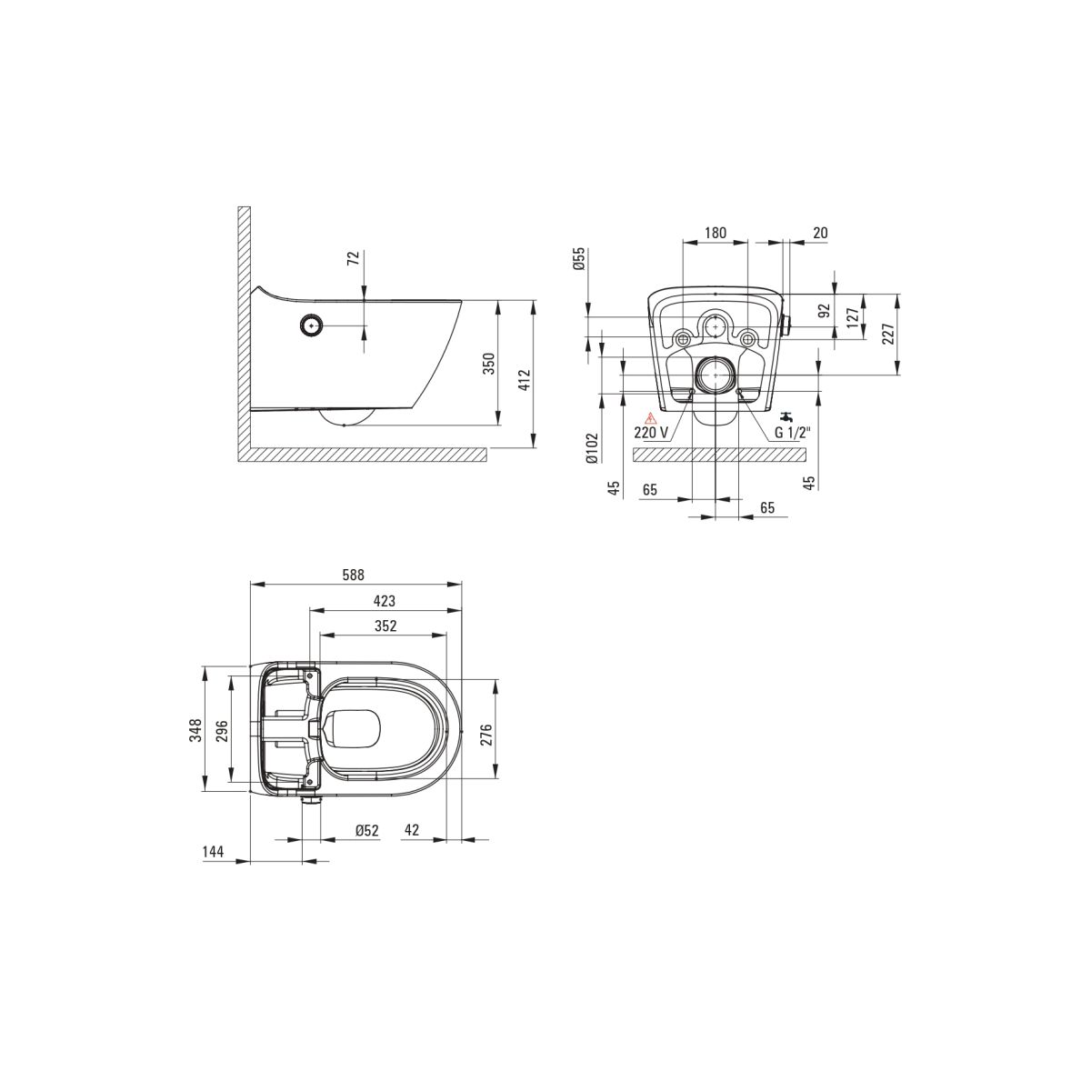 Funkcie: automatické otváranie a zatváranie, odvápňovanie, vyhrievané sedadlo, podsvietenie, samočistiace rameno trysky, sušenie vzduchom