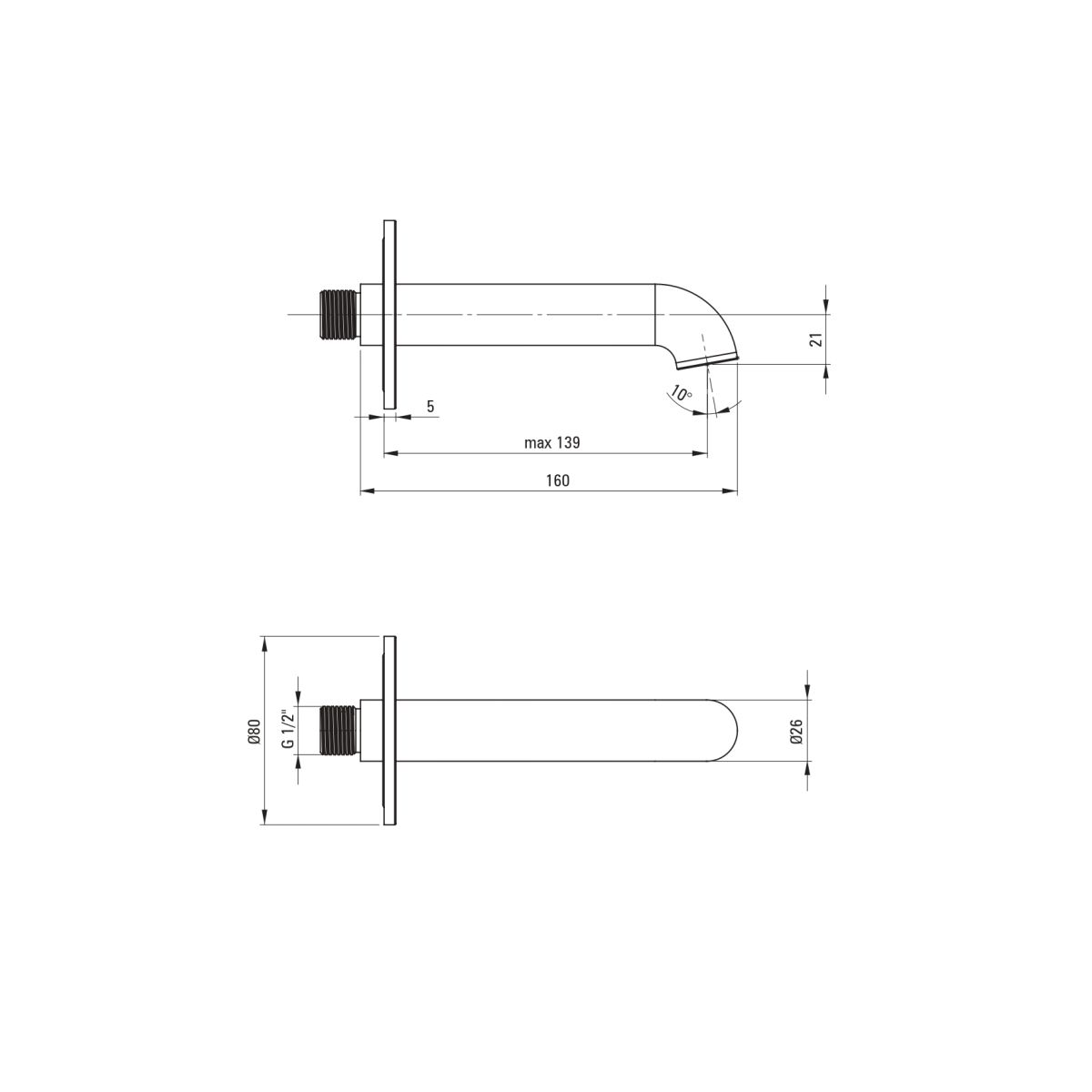 Skrytá výtoková rúra v titánovom vyhotovení je určená pre vane aj malé umývadlá. S dĺžkou 16 cm a silikónovým perlátorom poskytuje funkčnosť v minimalistickej podobe. Dodatočný perlátor, ktorý zaručuje prevzdušnený prúd vody, umožňuje inštaláciu pri malých umývadlách, vďaka čomu je výtok ideálny do malých kúpeľní. Titánová povrchová úprava dodáva interiéru exkluzívny a industriálny dojem.