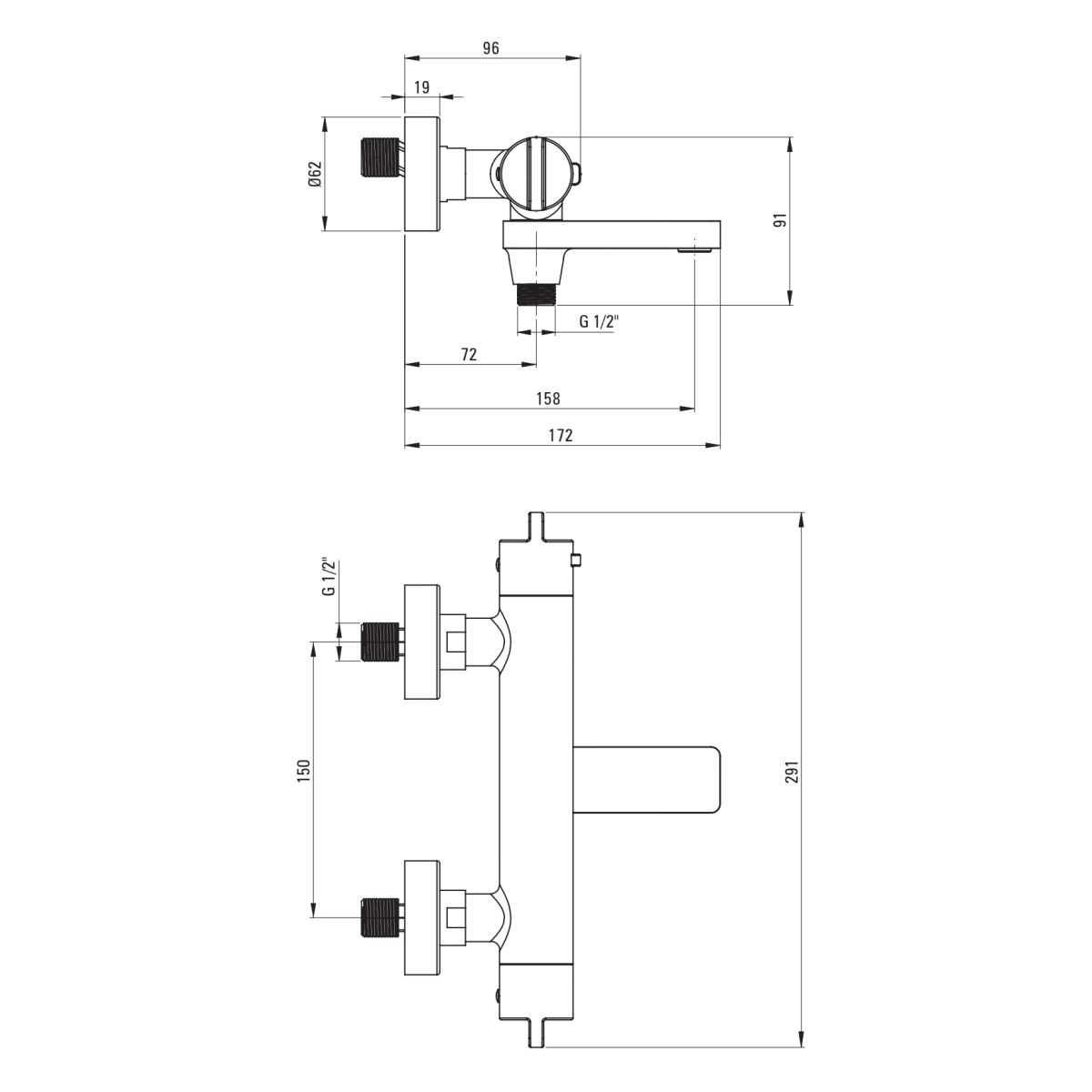 Deante Therm vaňová/sprchová batéria nástenná s termostatom || BCH_C1BT