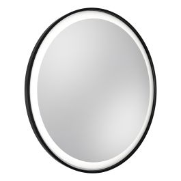 Zrkadlo v čiernom ráme z brúseného hliníka. Hĺbka rámu je 2,3 cm. Pieskovaný obvodový pás je osvetlený LED diódami, ktoré osvetľujú aj stenu za zrkadlom.