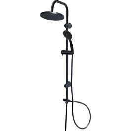 Nástenný hliníkový sprchový panel. Sada obsahuje: ručnú sprchu sivej farby, sprchovú hadicu 150 cm, mobilnú sprchovú hlavicu sivej farby s priemerom 20 cm. Farba: čierna. Veľkosť 99 cm.
