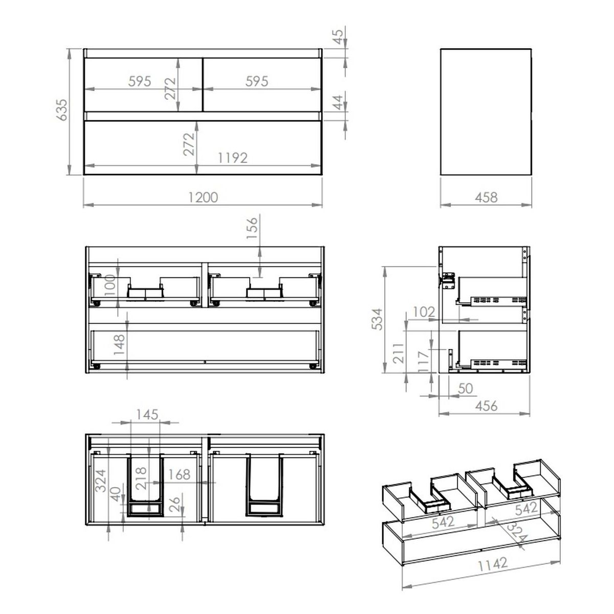 Elita Split skrinka 120x45.8x63.5 cm závesná kúpeľňová skrinka pod umývadlo biela RE012007158060