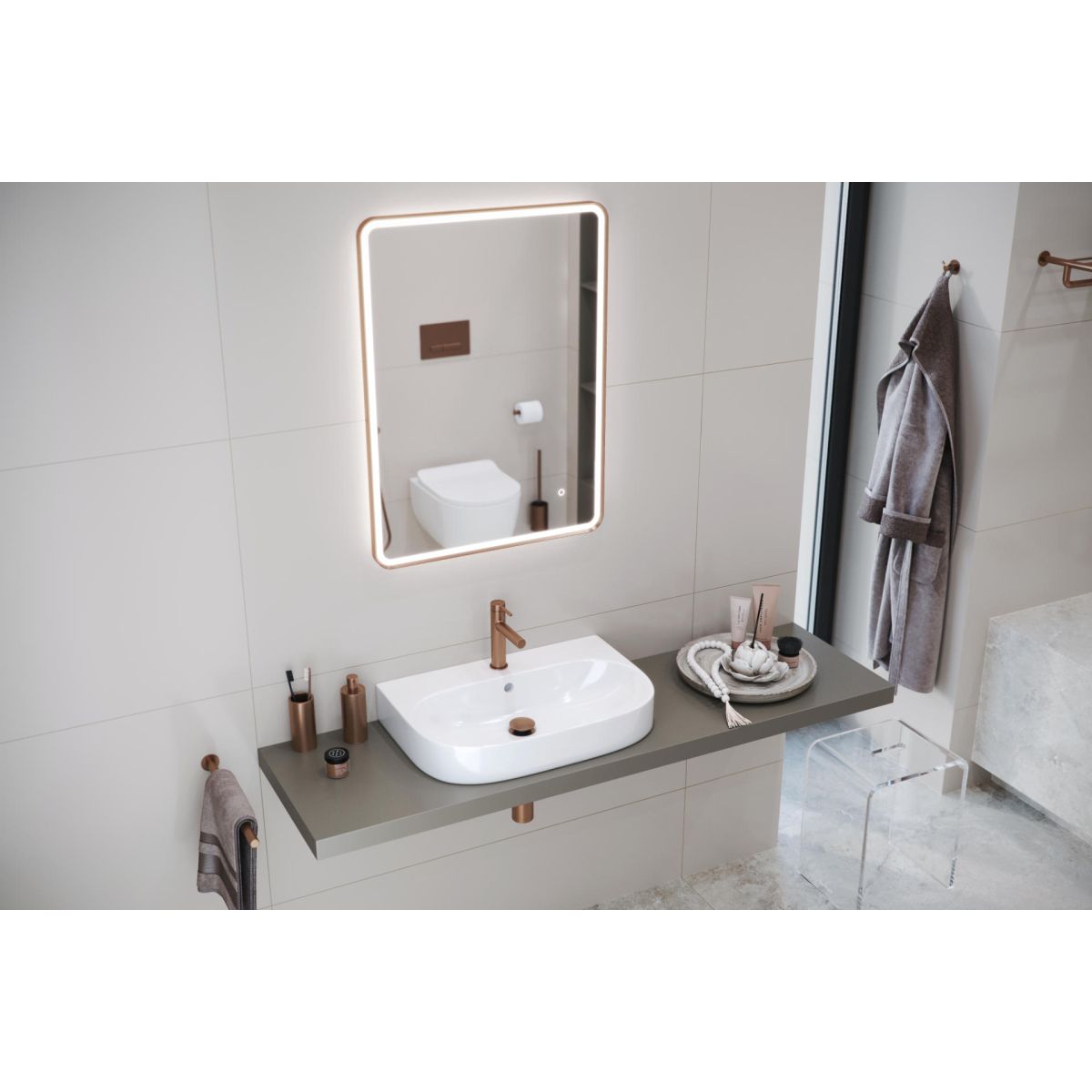 Umyvadlo je vybavené otvorom pre batériu a prepadom, čo zaručuje komfort a bezpečnosť. Hladký, lesklý povrch vyzerá krásne a uľahčuje každodenné čistenie. Umyvadlo je možné inštalovať buď na dosku, alebo na stenu, čo vám poskytuje väčšiu flexibilitu pri navrhovaní kúpeľňového priestoru.