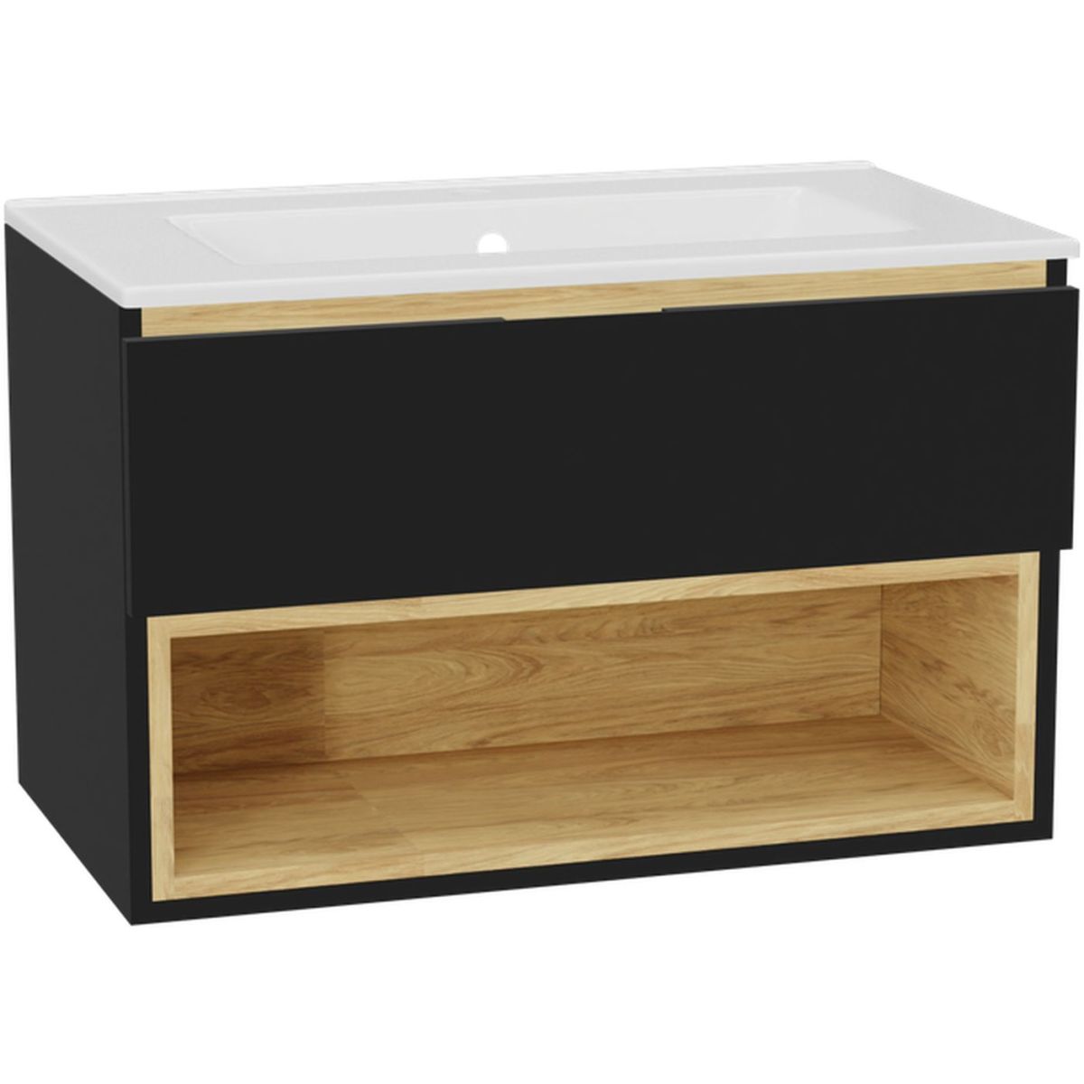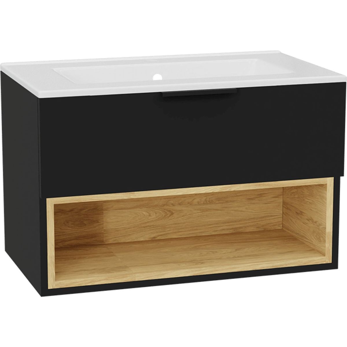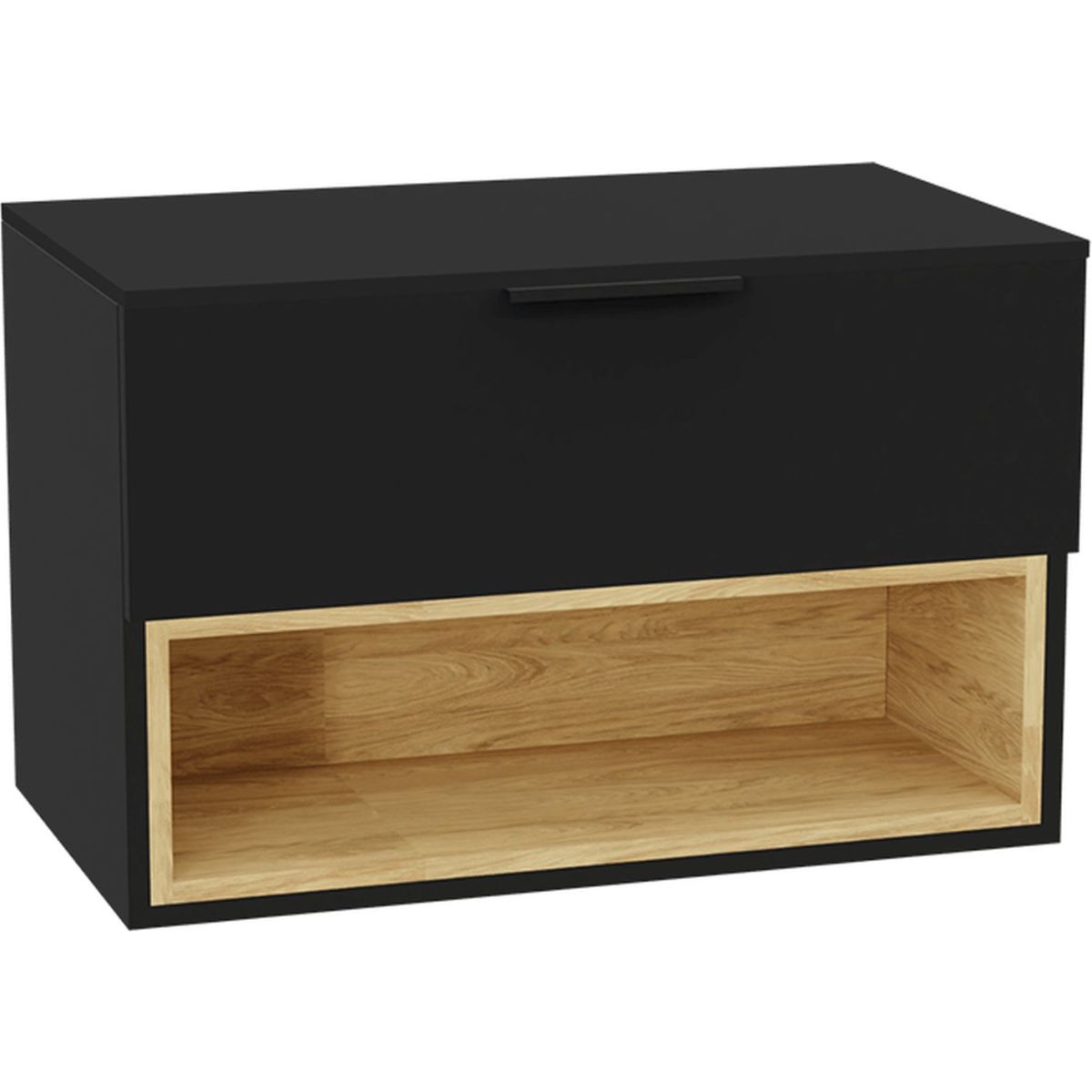 Skriňa Tuto 2.0 skrinka 80 cm, 1 zásuvka bez čela, bez hornej dosky, čierny mat/dub MLEX.2171.800.BKBL