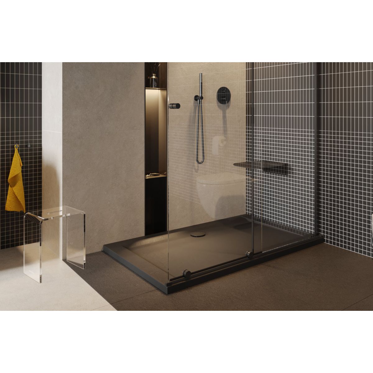 Vert sprchová vanička čierna 90 mm s krytom, čierna matná INEX.2116.90.BLBL