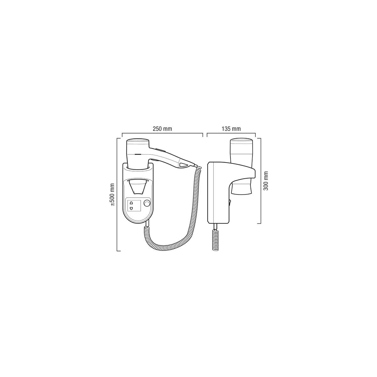 - rozmery sušiča: výška 270 mm (výška s hadicou 500 mm), šírka 245 mm, hĺbka 150 mm
