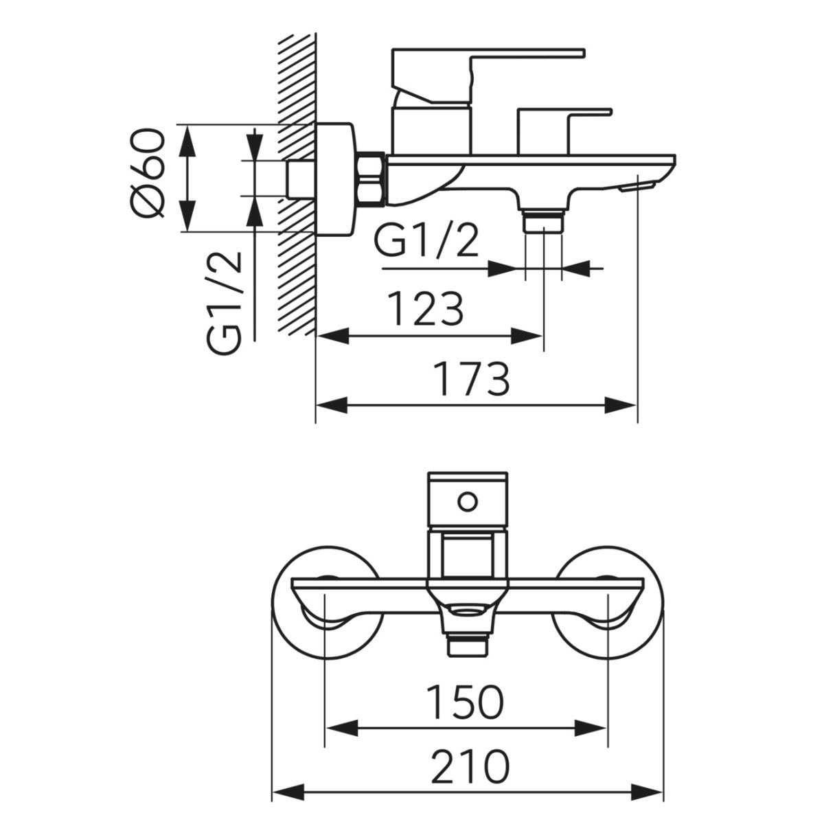- Nástenná vaňová batéria, bez sprchovej súpravy