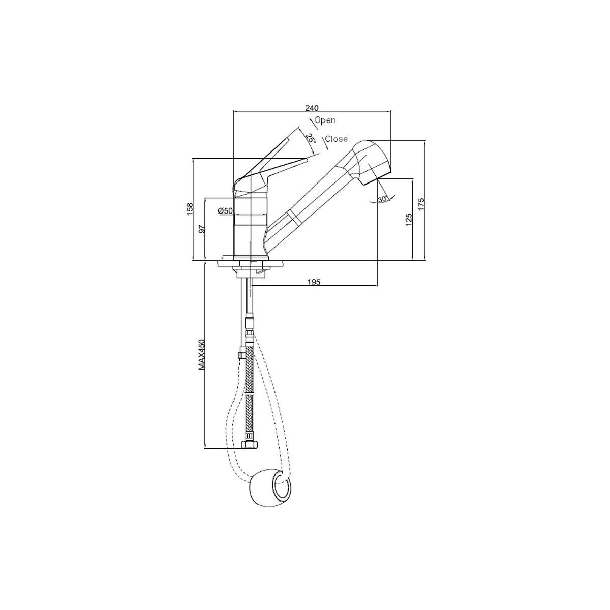 - spätný ventil (na prerušenie spätného toku vody z vyťahovanej sprchy)