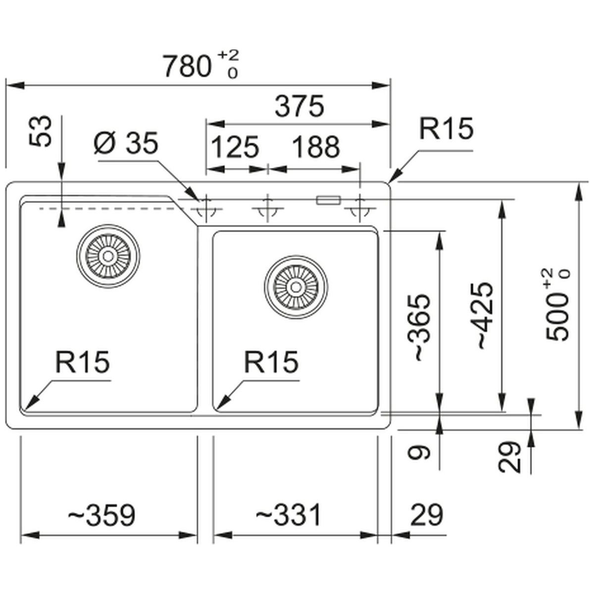 Súprava drezu (114.0687.308) + odtoková vložka (112.0538.950).