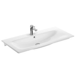 Umývadlo Geberit Selnova Square je harmonickou kombináciou elegancie a funkčnosti, vytvorenou pre pohodlnú a štýlovú kúpeľňu. Jeho pôsobivá šírka 100 cm umožňuje pohodlné používanie a zároveň poskytuje elegantnú, minimalistickú líniu vďaka tenkému okraju a obdĺžnikovému tvaru, ktorý dokonale ladí s nábytkovým radom Selnova Square. Vysokokvalitná sanitárna keramika nielenže pôsobí sviežo a elegantne, ale je aj odolná voči mechanickému poškodeniu a ľahko sa čistí - to je záruka, že umývadlo vydrží dlhé roky bez toho, aby stratilo svoj estetický vzhľad.