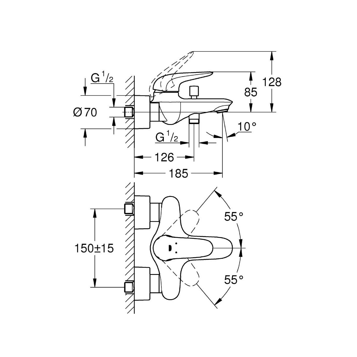 Grohe Eurostyle New vaňová/sprchová batéria nástenná StarLight Chrome 23726003