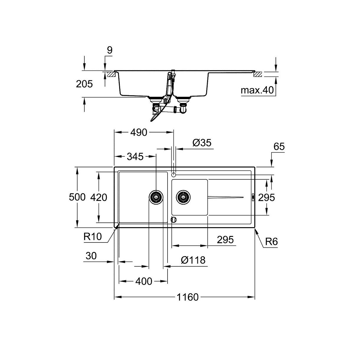 Grohe K400 granitový drez 116x50 cm čierna 31643AP0