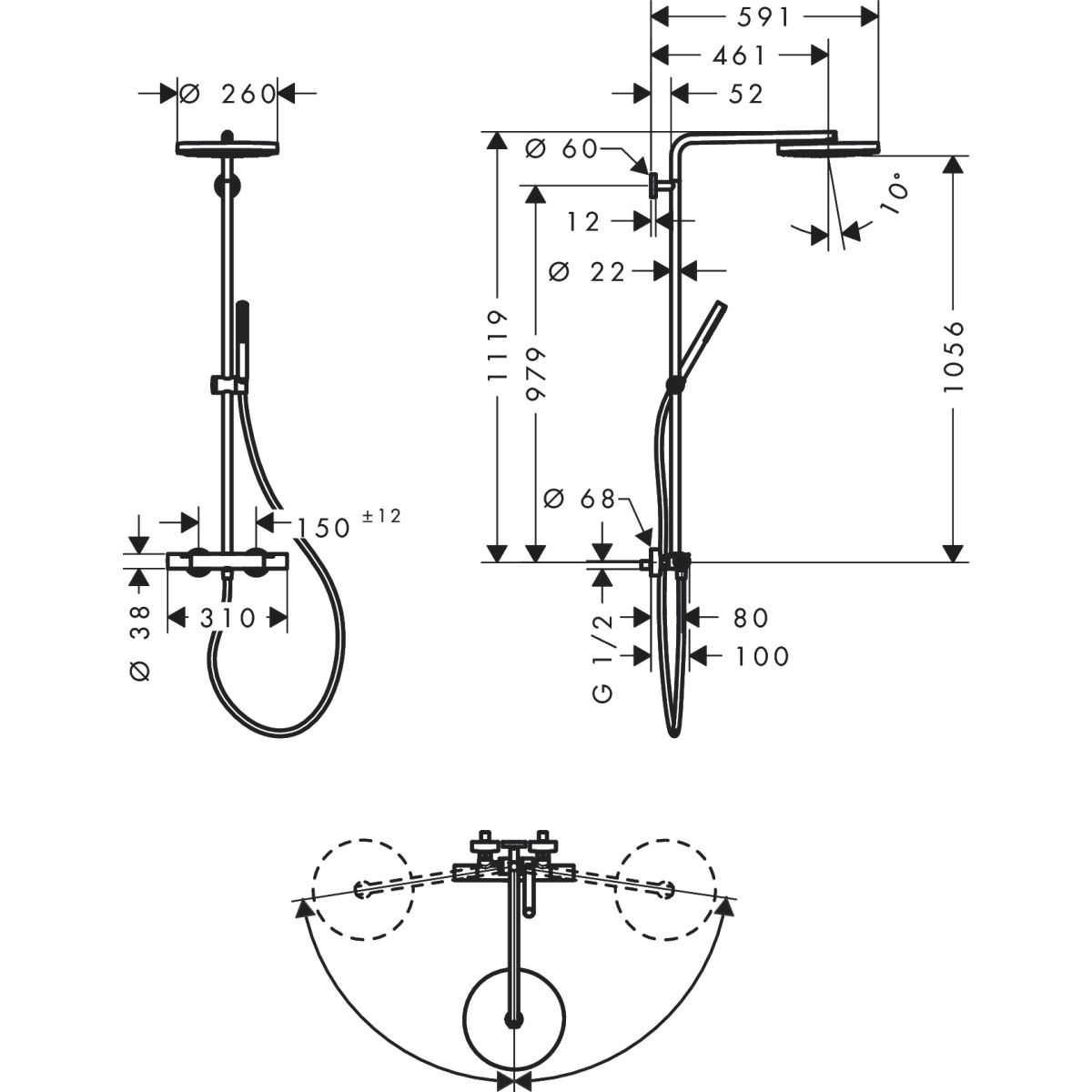 - dĺžka sprchového ramena: 460 mm