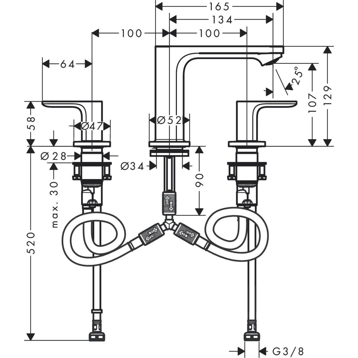 - pozostáva z: 3-otvorovej umývadlovej batérie, odpadovej súpravy