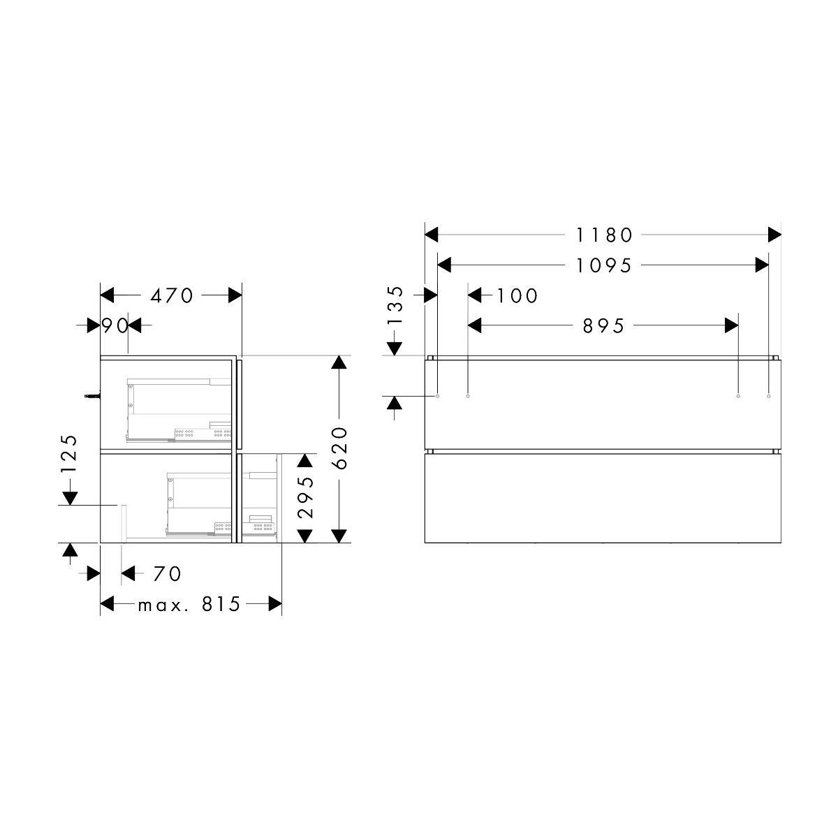 Vytvorte si kúpeľňu svojich snov s doplnkovými výrobkami od spoločnosti hansgrohe. Umývadlová skrinka je kompatibilná s umývadlami hansgrohe z rôznych línií. Tip: Ak chcete vytvoriť dojem stojacej skrinky alebo ak nosnosť steny nie je dostatočná, k dispozícii sú dve voliteľné nožičky.