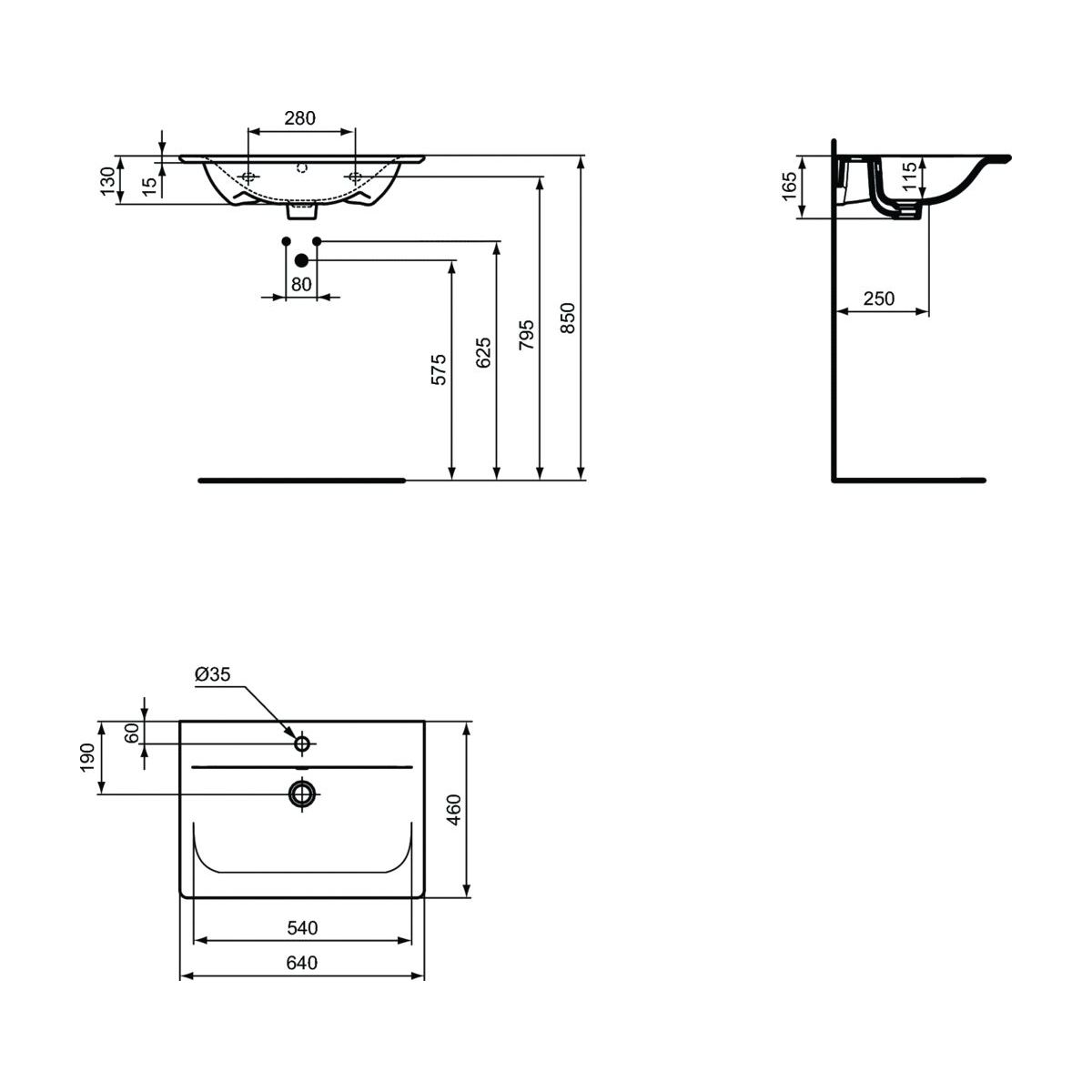 Ideal Standard Connect Air umývadlo 64x46 cm obdĺžnik klasické umývadlo-umývadlo na nábytok čierna E0289V3