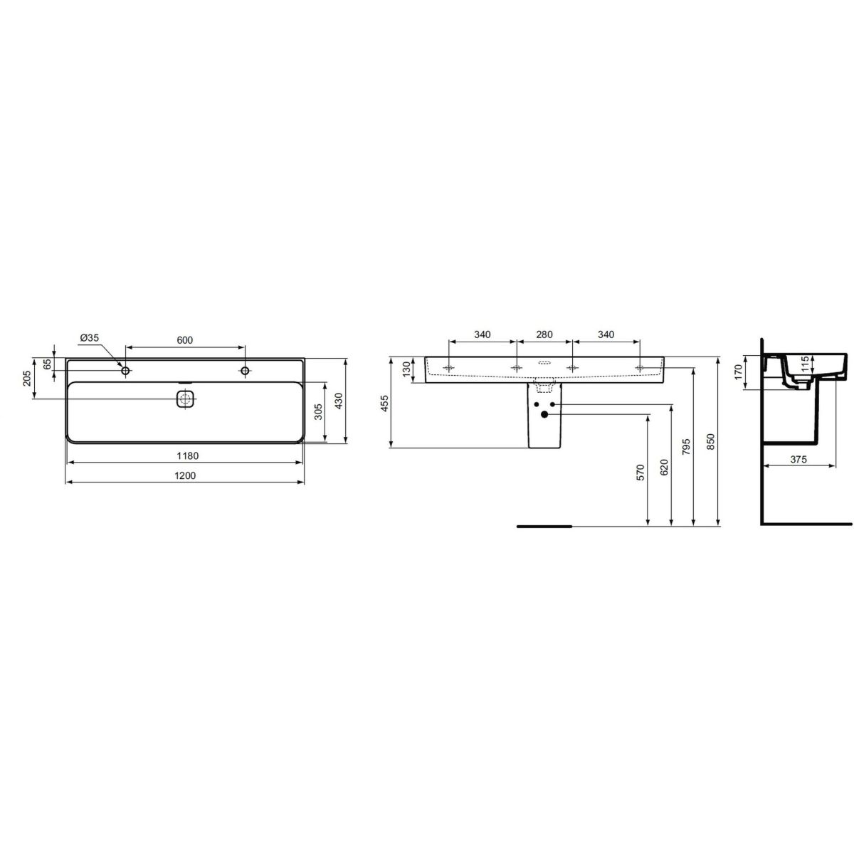 Ideal Standard Strada II umývadlo 120x43 cm obdĺžnik klasické umývadlo-pultové umývadlo biela T364801