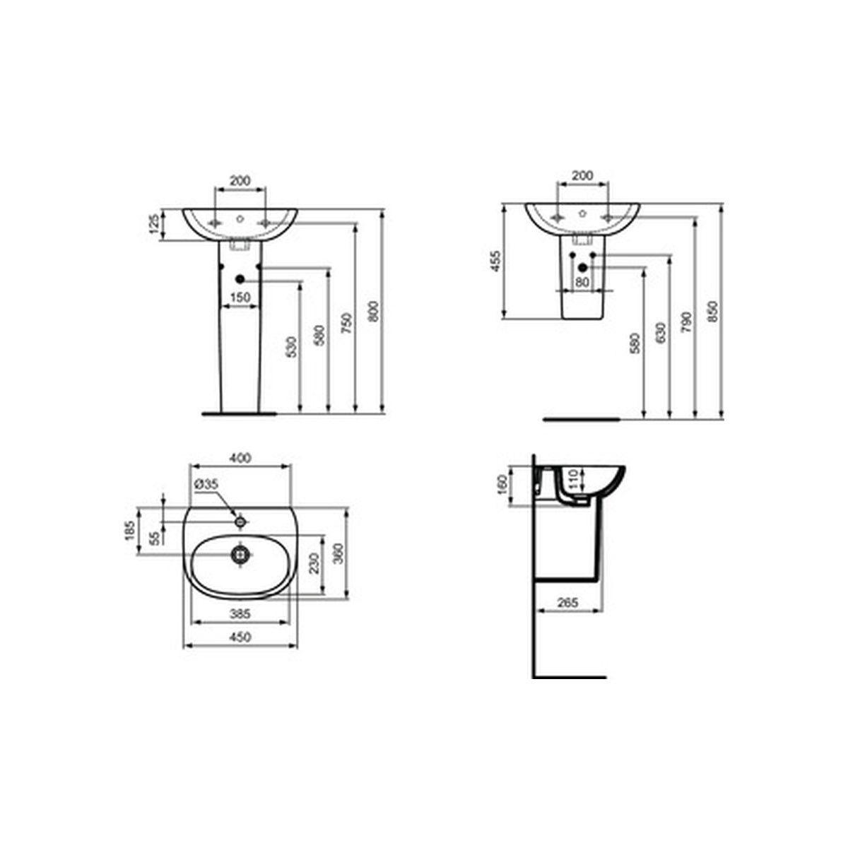 - na montáž s: s malým podstavcom T352101, malým polopodstavcom T352001 alebo samostatne so sifónom