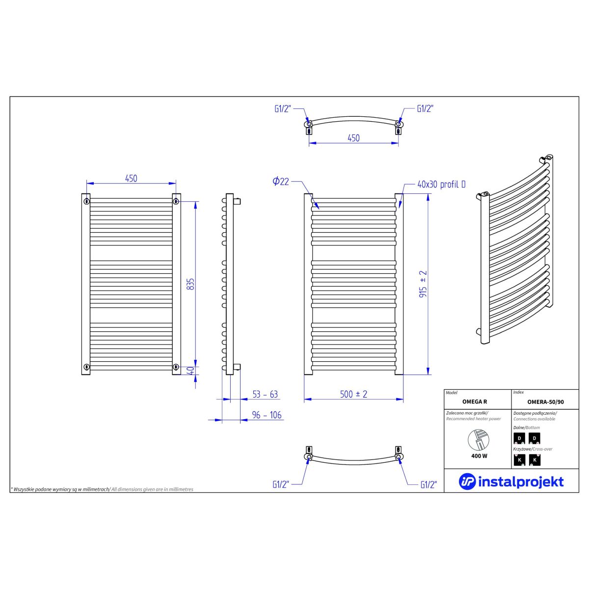 Instal Projekt Omega R kúpeľňový radiátor rebríkový 91.5x50 cm biela OMERA-50/90