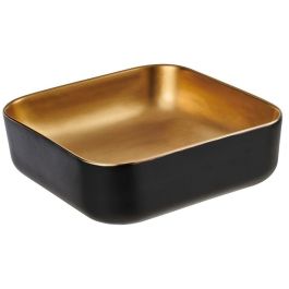 Invena Malaga umývadlo 39x39 cm štvorec pultové umývadlo čierna-zlatá CE-39-017