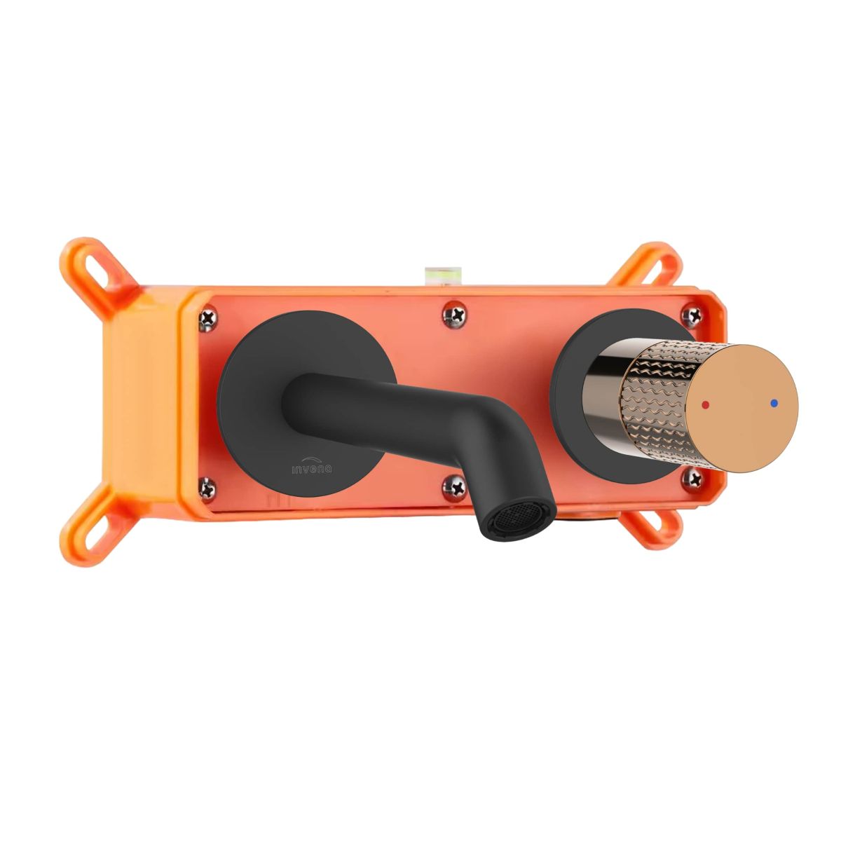 Elegancia a modernosť v najlepšej podobe - podomietková umývadlová batéria Monnlight v jedinečnej čiernej farbe s jemne zdobenou rukoväťou v ružovom zlate. Tento výrobok je kvintesenciou štýlu a funkčnosti, ktorá dokonale doplní každú luxusnú kúpeľňu.