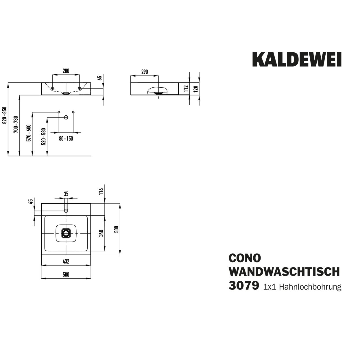 Kaldewei Cono umývadlo 50x50 cm štvorec klasické umývadlo biela 908606013001