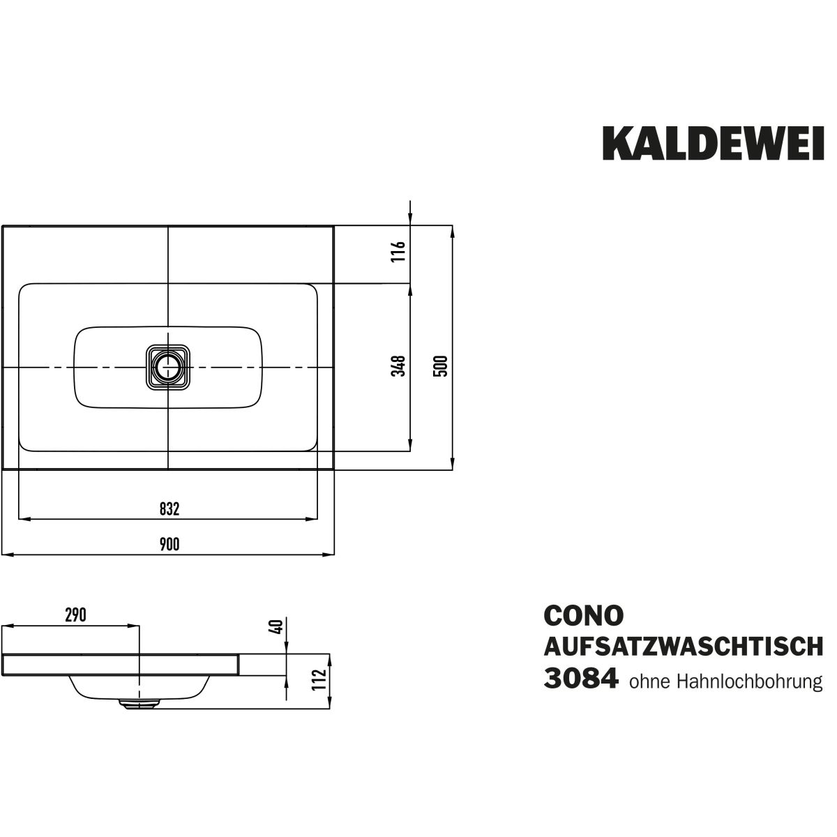 Kaldewei Cono umývadlo 90x50 cm obdĺžnik pultové umývadlo biela 902006003001