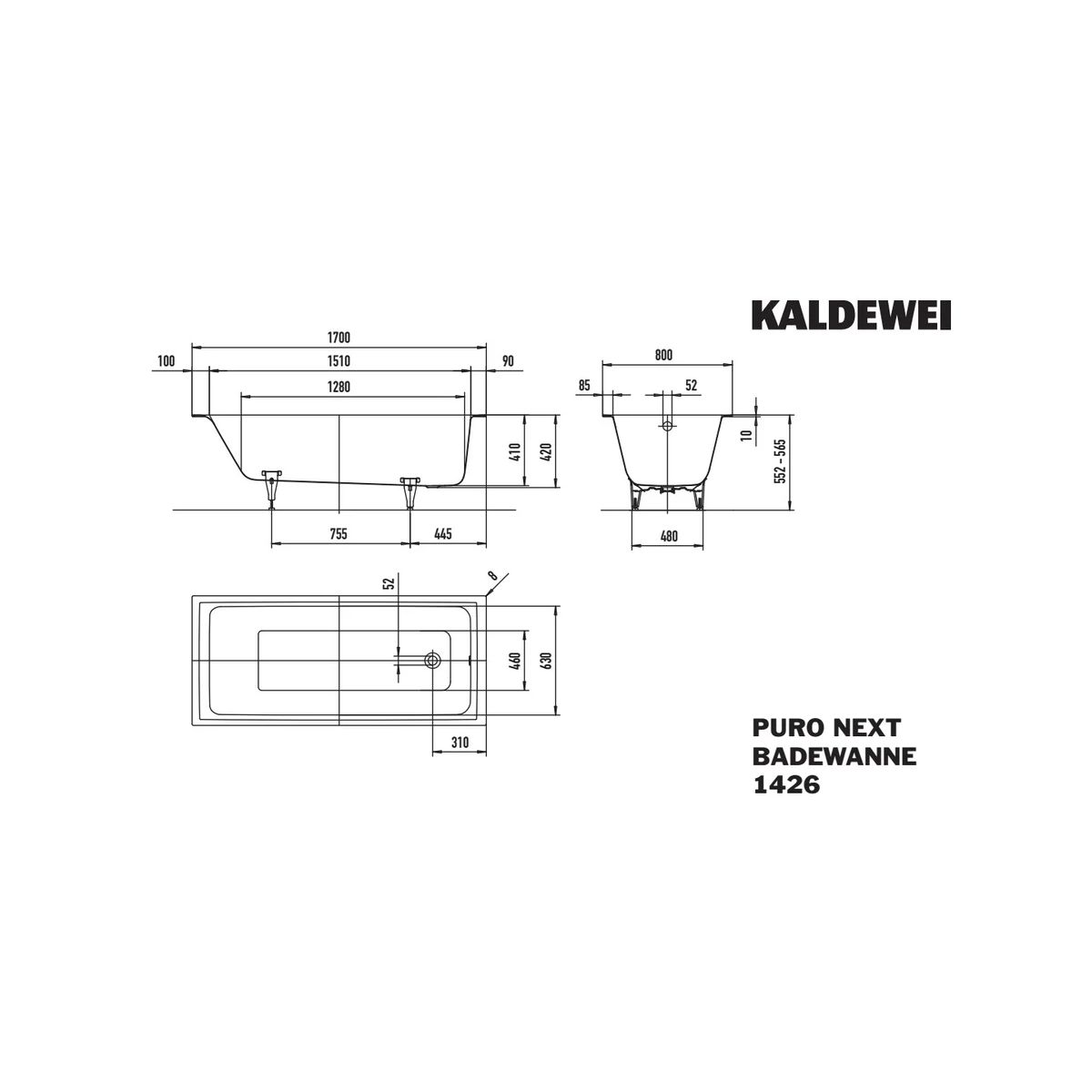Kaldewei Puro Next obdĺžniková vaňa 170x80 cm biela 14260001100