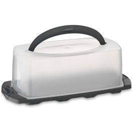Tmavošedá nádoba má odnímateľné veko a rukoväte na jednoduché prenášanie.