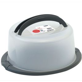 Tmavošedá nádoba má odnímateľné veko a rukoväte na jednoduché prenášanie.