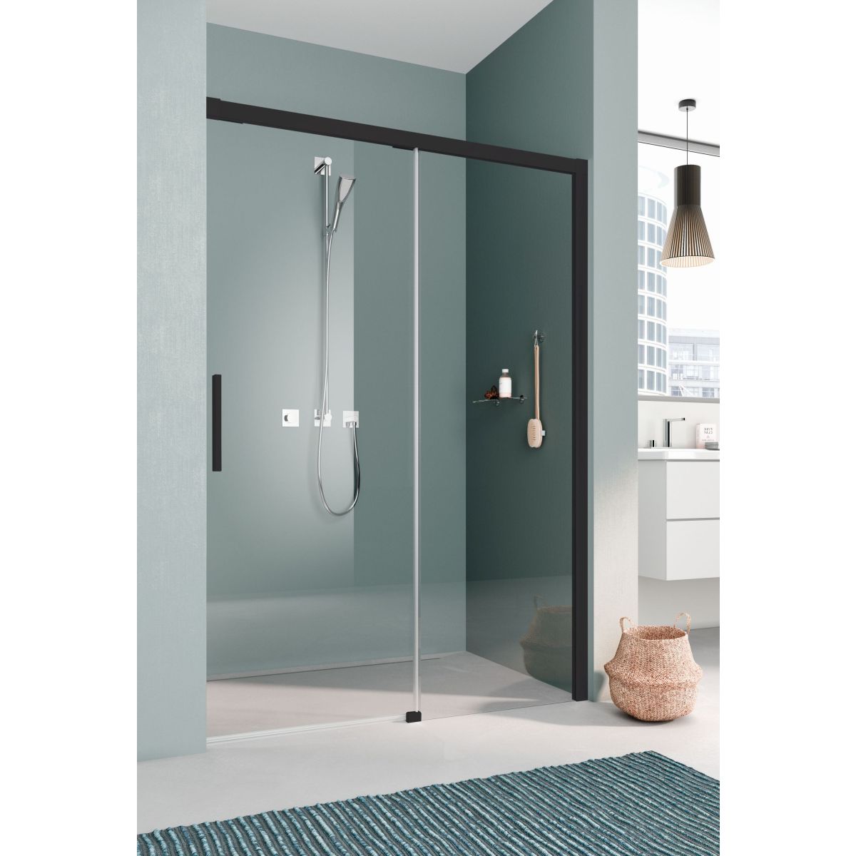 Kermi Nica sprchové dvere 130 cm posuvné čierna matná/priehľadné sklo NIL2R130203PK