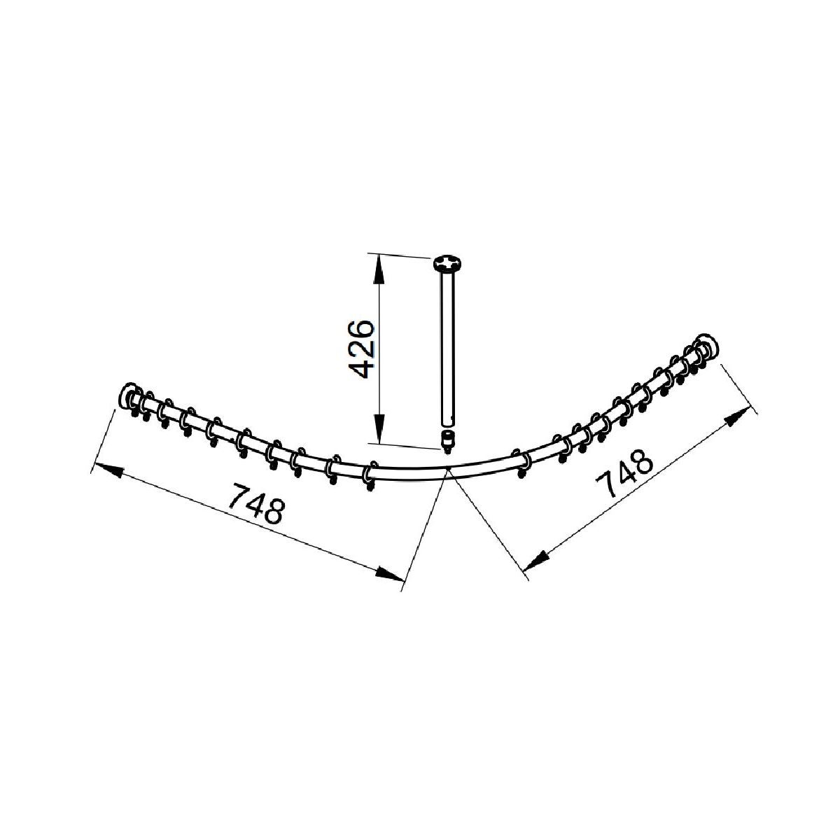 - súprava koľajničiek na sprchový záves Pre polkruhové sprchové vaničky 900 x 900 mm
